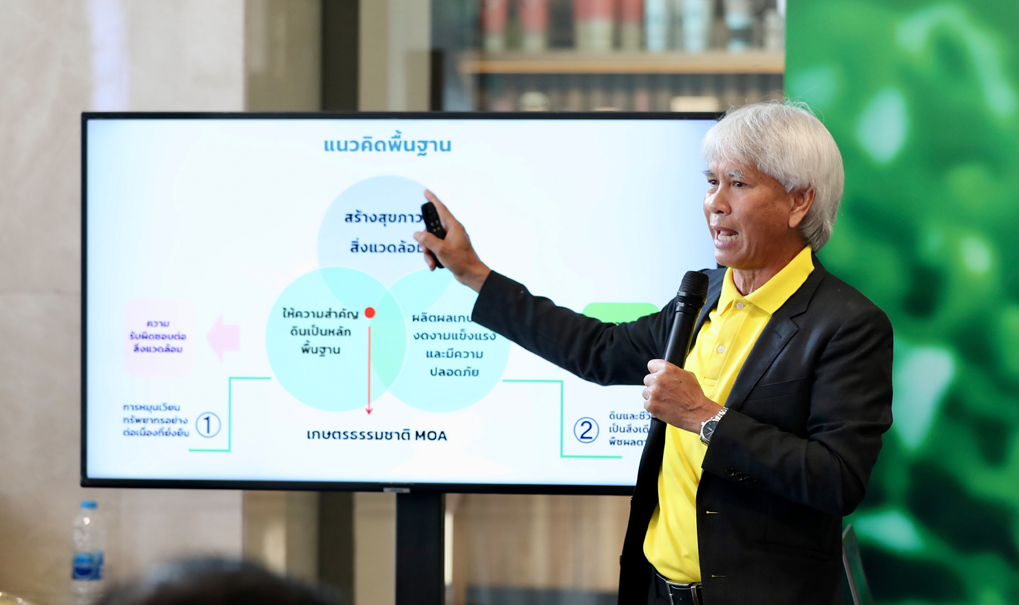 นอกจากนี้ ตลอดทั้ง 3 วัน มีการจำหน่ายสินค้าจากร้านค้าตามโครงการในพระราชดำริ ผักผลไม้ออร์แกนิกและเกษตรธรรมชาติ อาหารสุขภาพ ไอศกรีมข้าวไรซ์เบอร์รี่ และของอุปโภคบริโภคอื่น ๆ อีกมากมายจากร้านค้าผู้ประกอบการ รวมถึงบูธตรวจสุขภาพแบบองค์รวม ที่มาเปิดให้บริการตรวจสุขภาพและให้คำปรึกษาเพื่อส่งเสริมการมีสุขภาวะที่ดีทั้งกายใจ เมื่อวันที่ 1 - 3 ตุลาคม 2568 ที่ผ่านมา บริเวณล็อบบี้และด้านหน้าอาคารไทยกรุ๊ป สำนักงานใหญ่ ถนนสีลม"